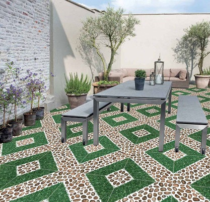 Nếu sân thượng nhà bạn có mái che thì việc chọn gạch đơn giản không cần quá cầu kì. Bạn có thể sử dụng các loại gạch ceramic, gạch đá, hoa văn giả sỏi, giả cỏ....